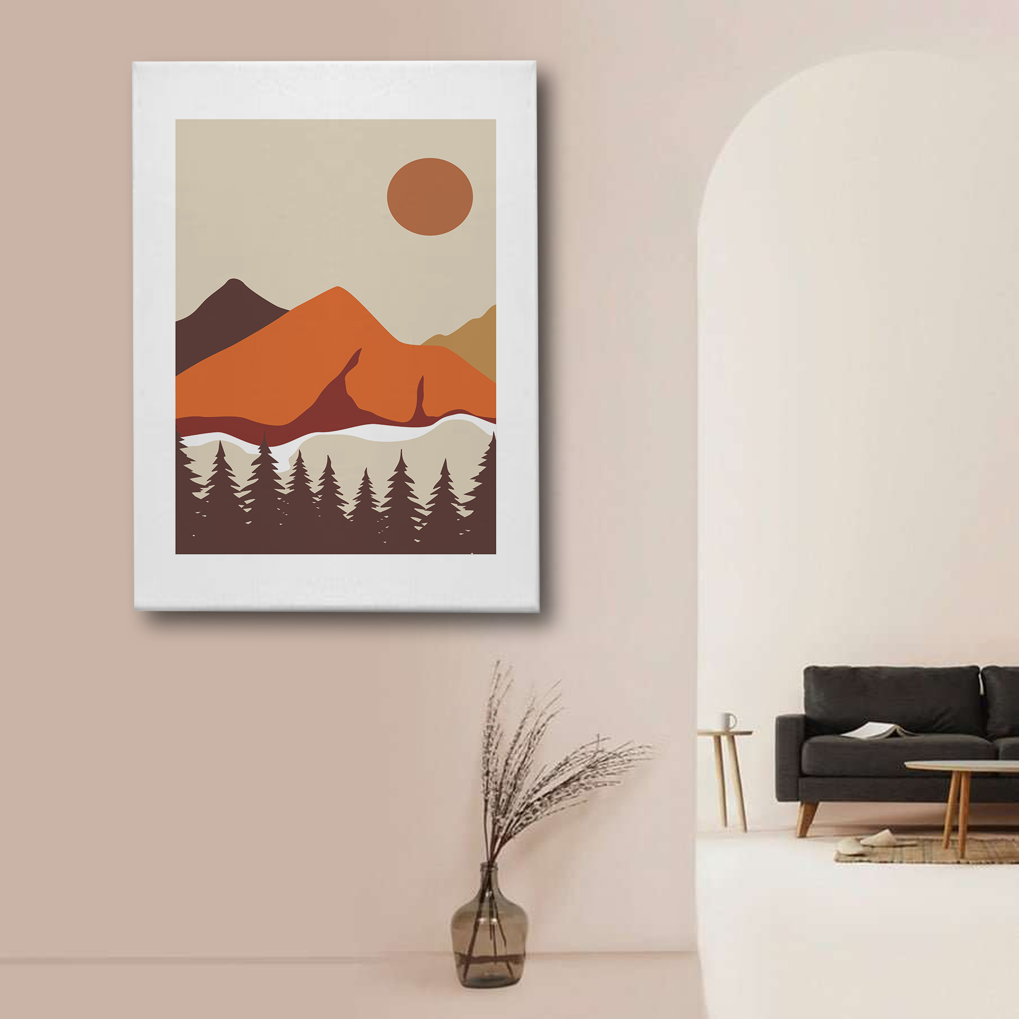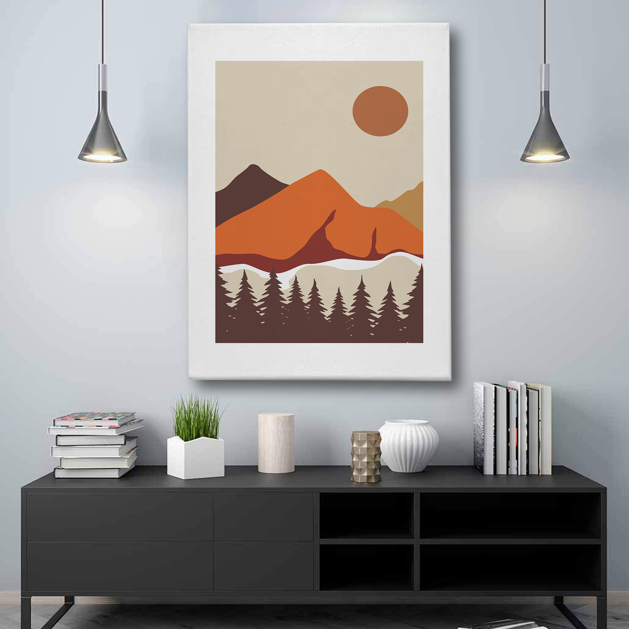 Abstract Mountain Landscape Canvas Wall Art – Minimalist Sunset Nature Print