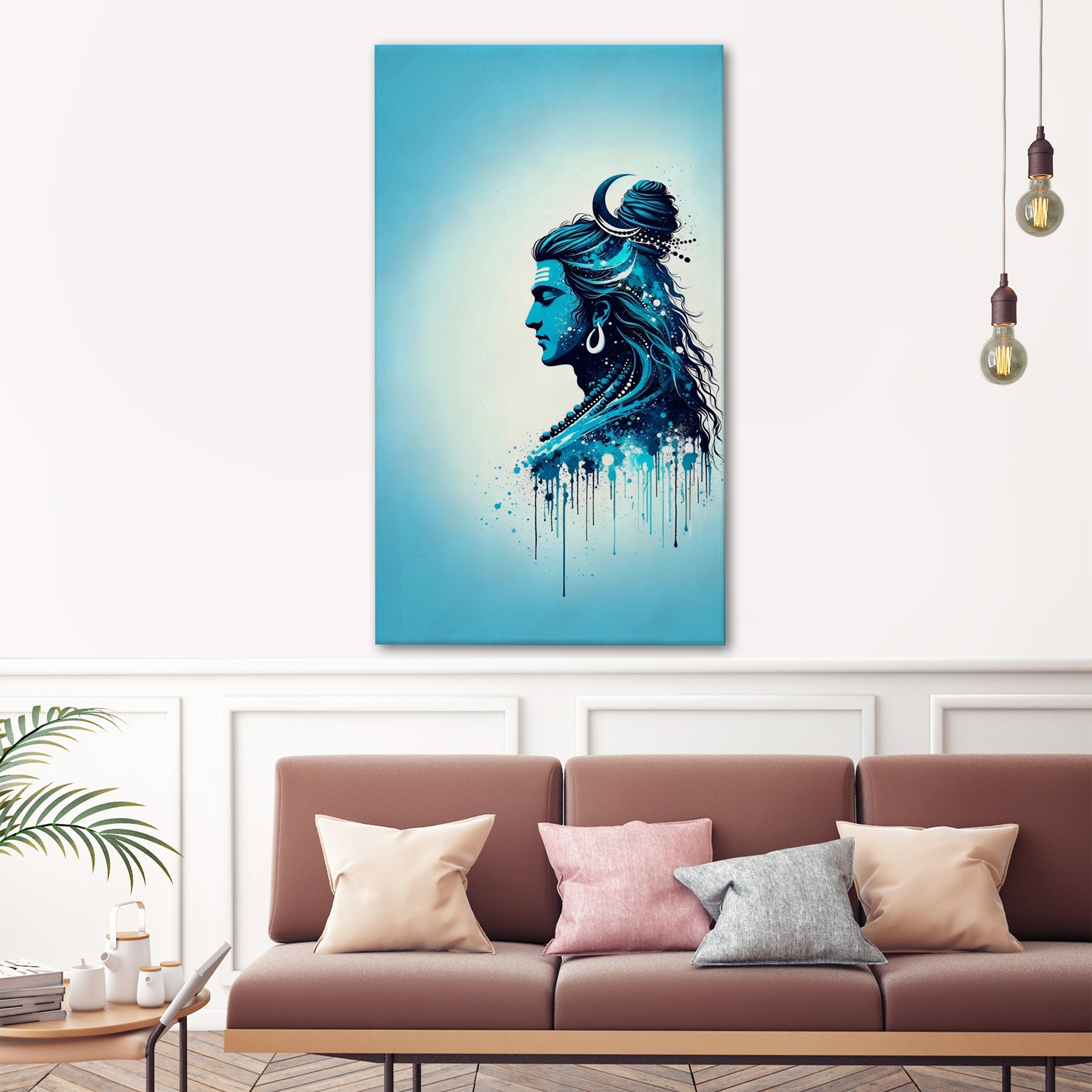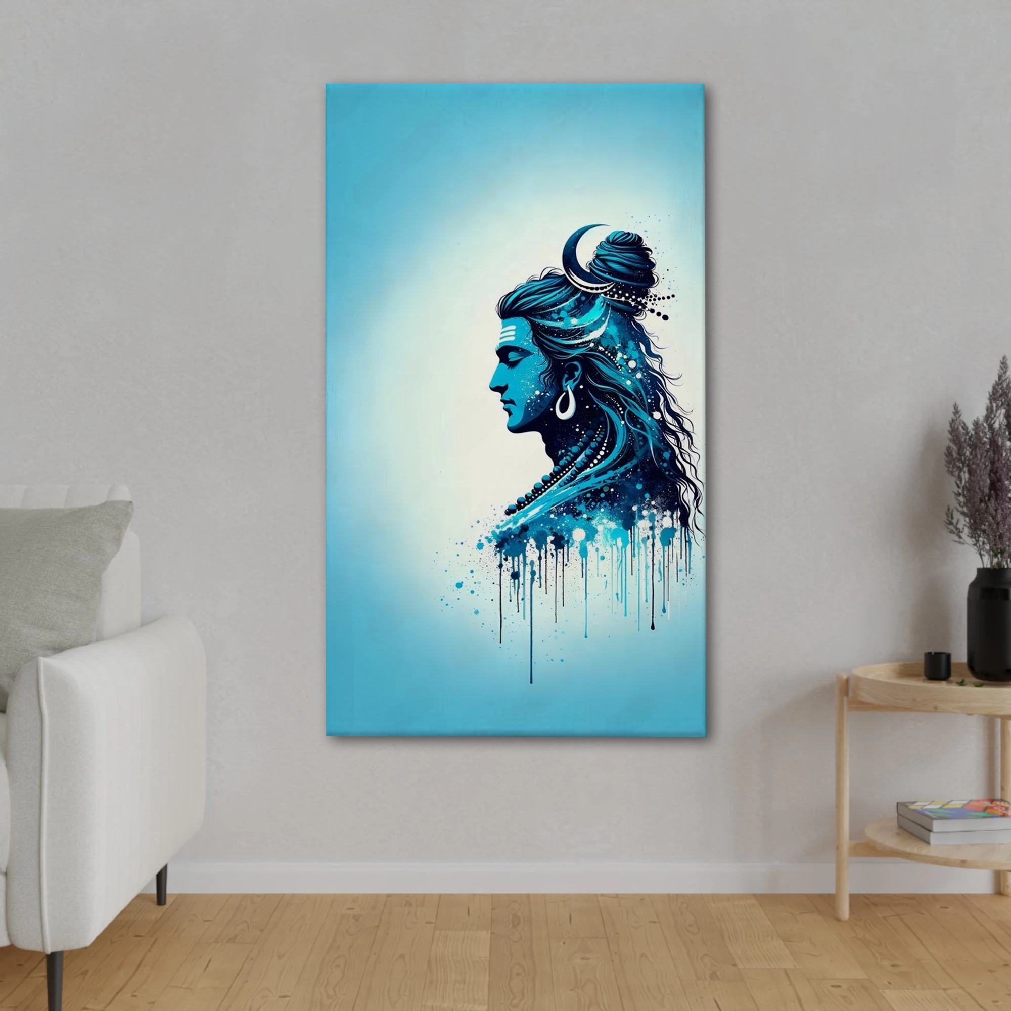 Abstract Shiva Profile Canvas Wall Art – Blue Aura Modern Spiritual Decor