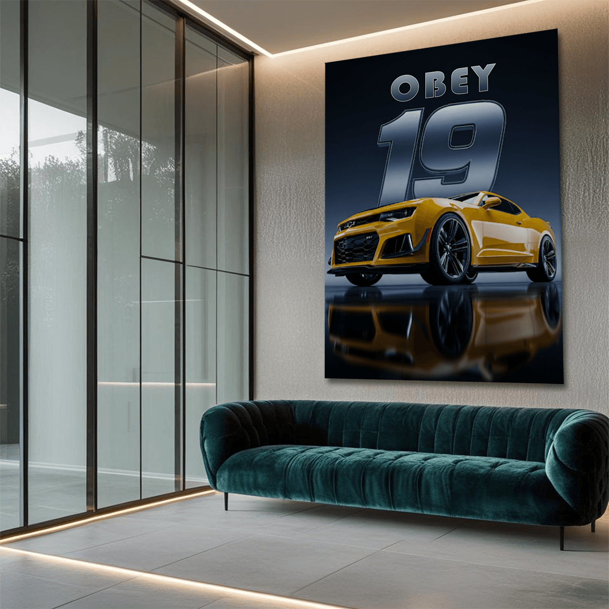 Chevrolet Camaro Yellow Sports Car Canvas Wall Art – Modern Muscle Car Décor