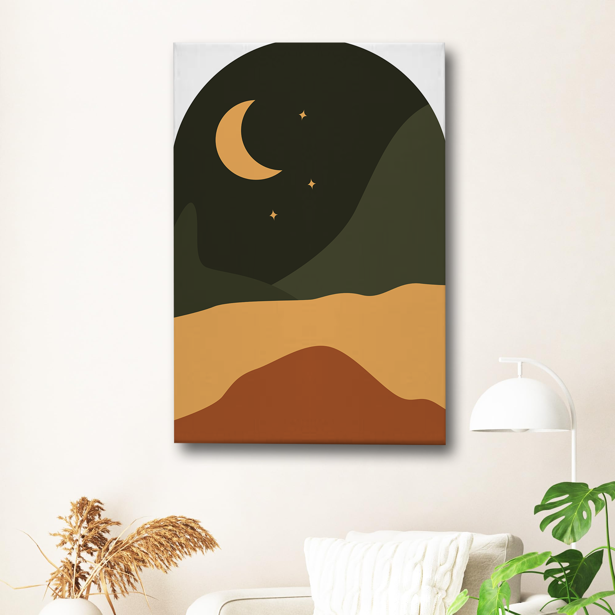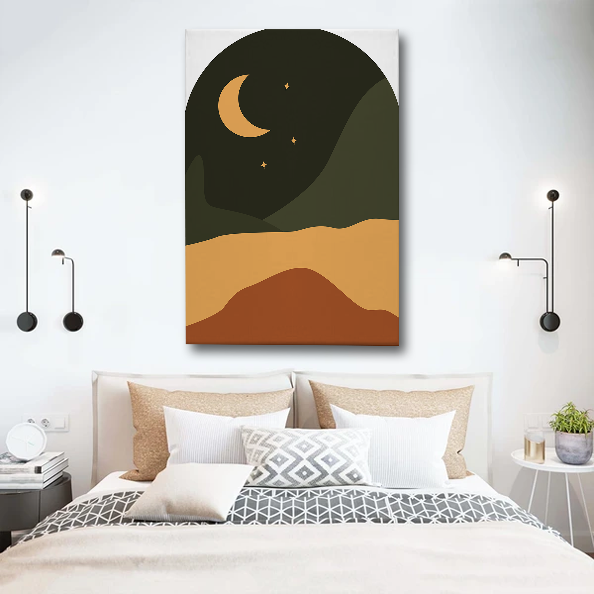 Crescent Moon Abstract Canvas Wall Art Print – Minimalist Night Sky Home Decor