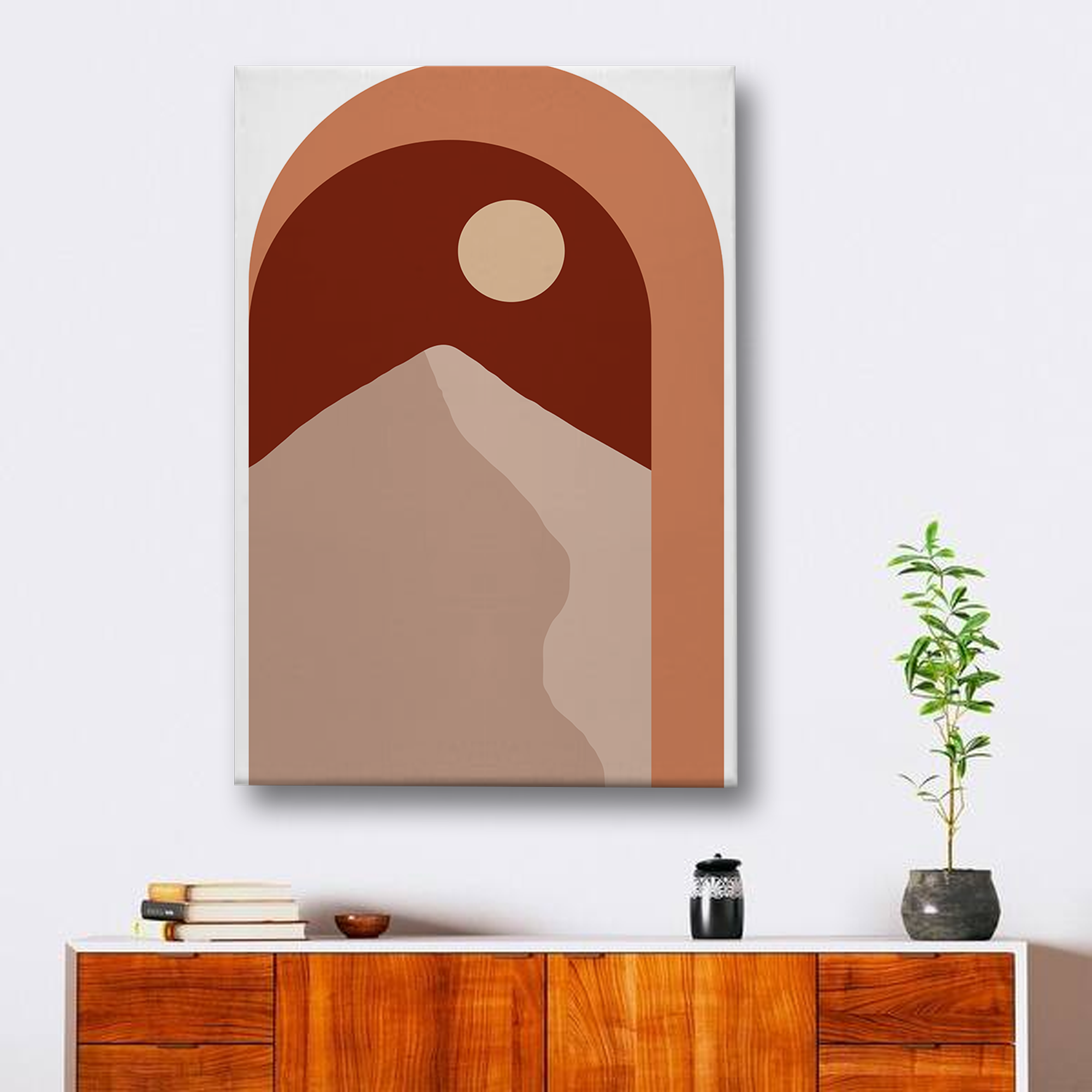 Geometric Mountain & Sun Canvas Wall Art – Minimalist Boho Style