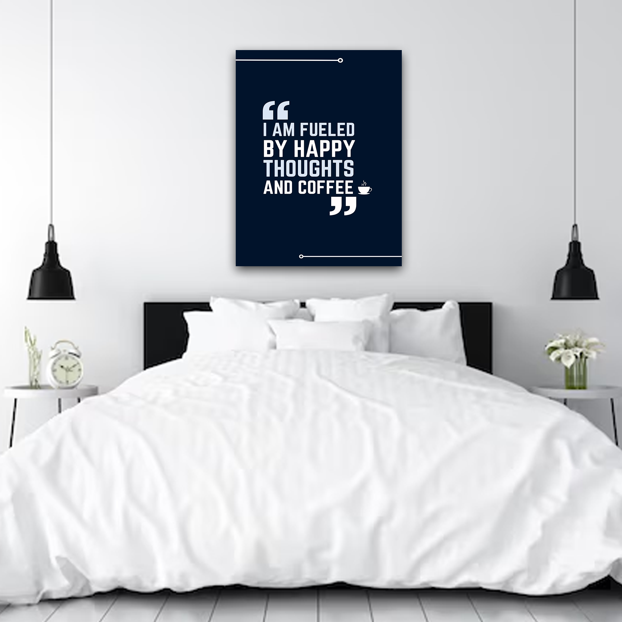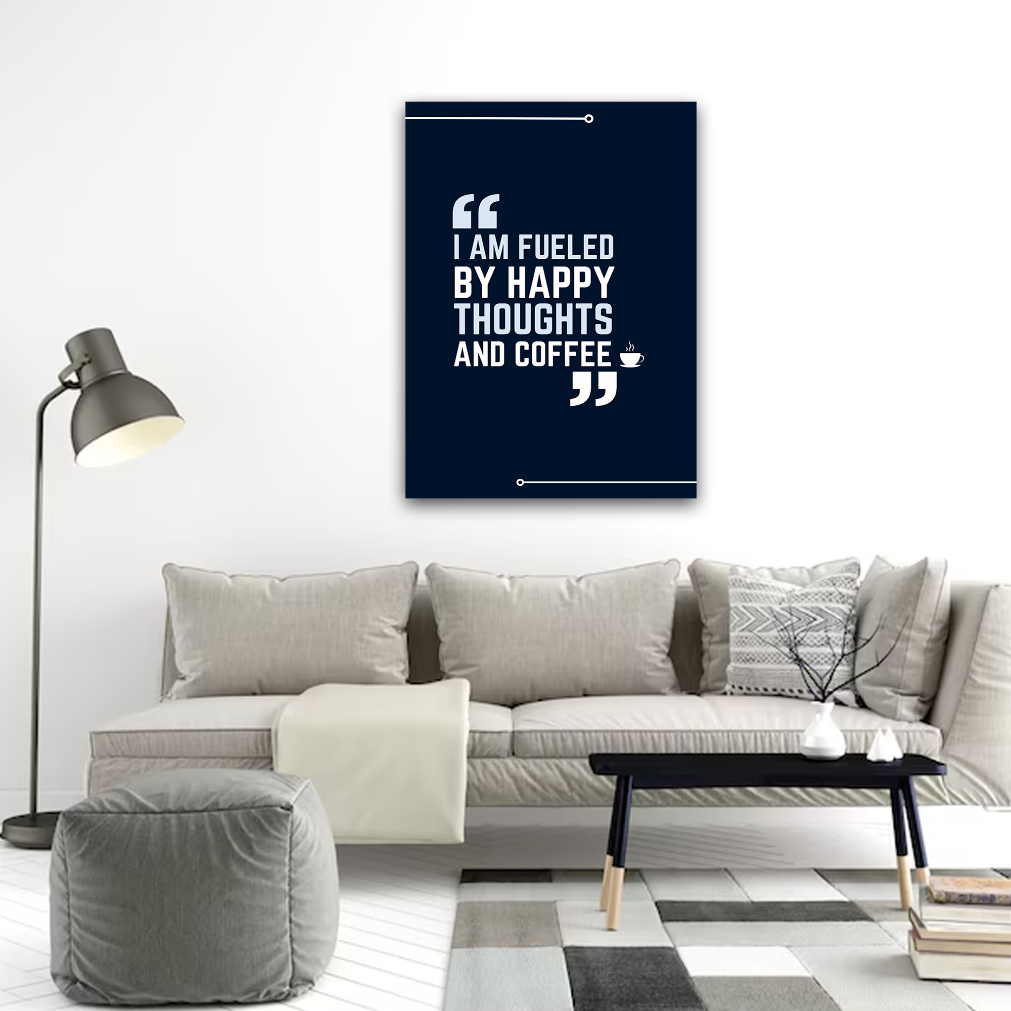 Happy Thoughts and Coffee Canvas Wall Art – Motivational Quote Print for Home & Office Decor