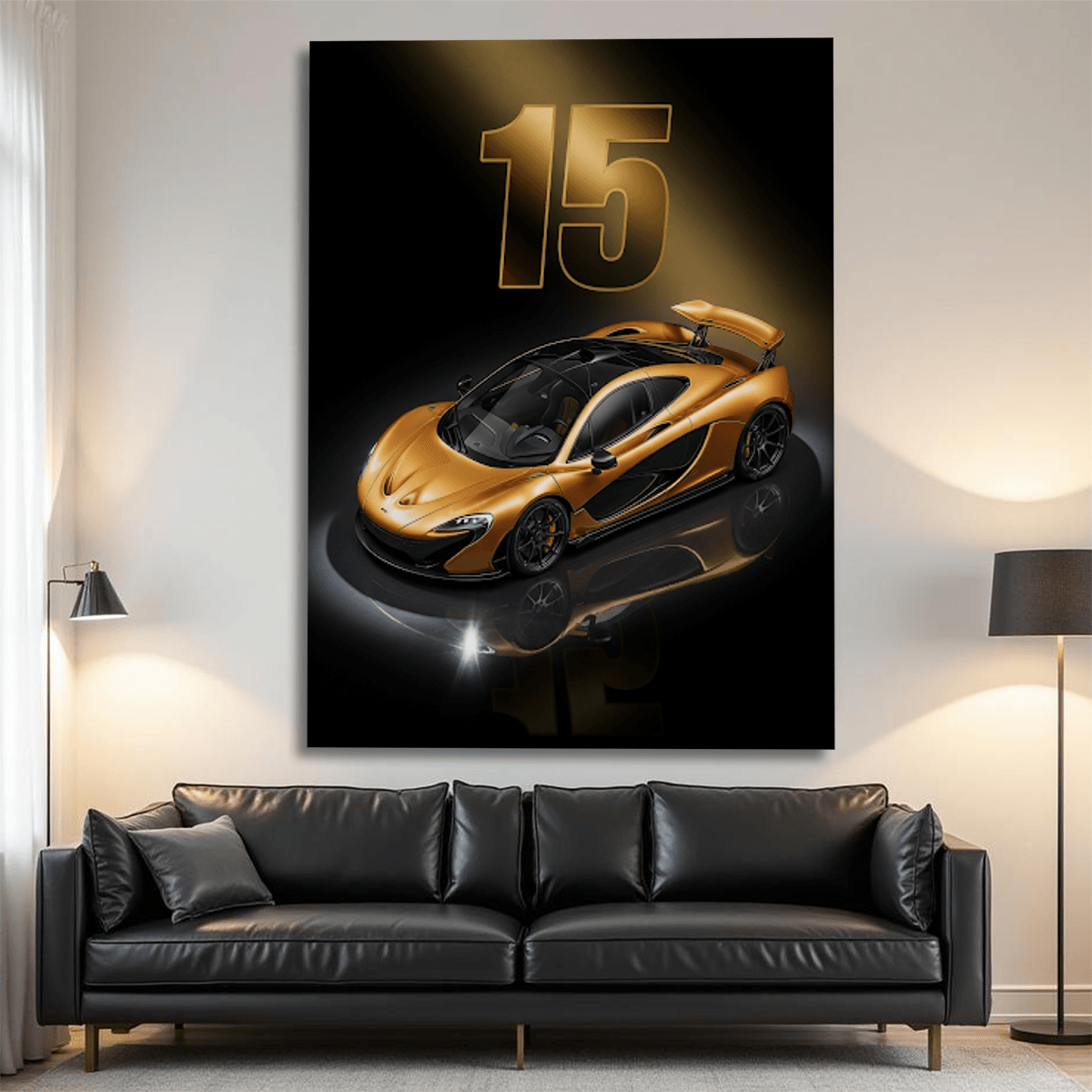 McLaren P1 Golden Supercar Wall Art Print for Modern Home and Office Decor