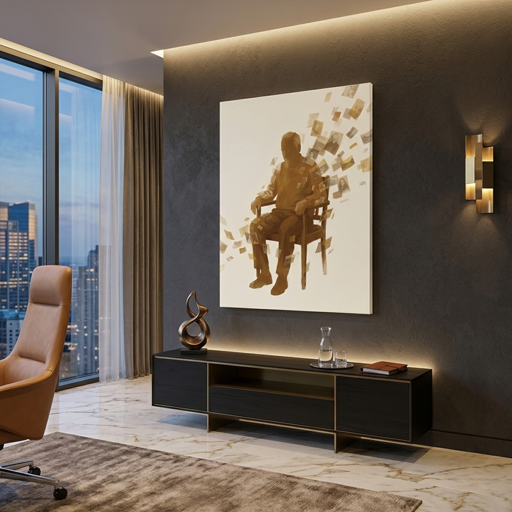 Memories — Elder Man Dissolving Into Photographs Canvas Wall Art Prints