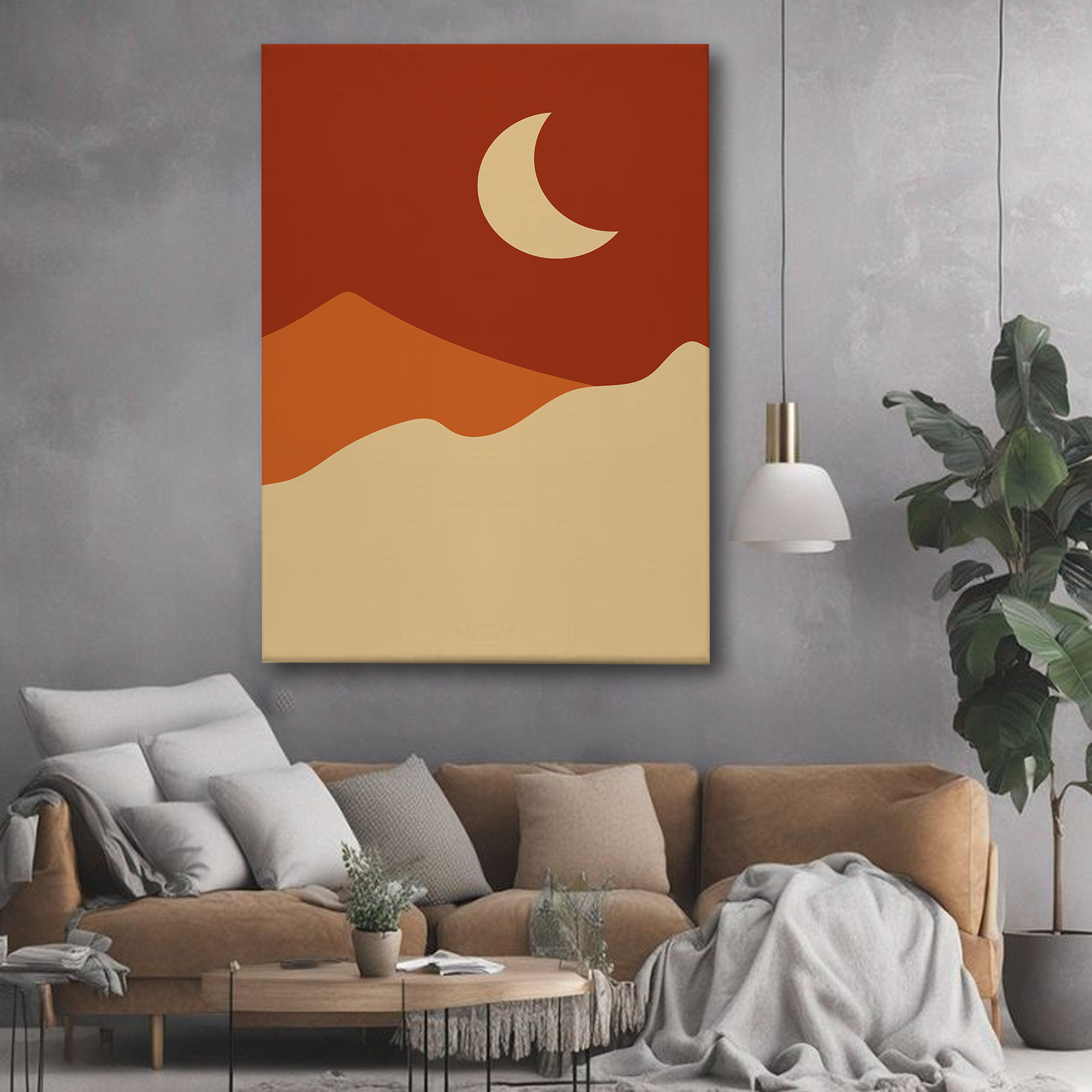 Minimalist Desert Night Canvas Wall Art – Crescent Moon and Sand Dunes