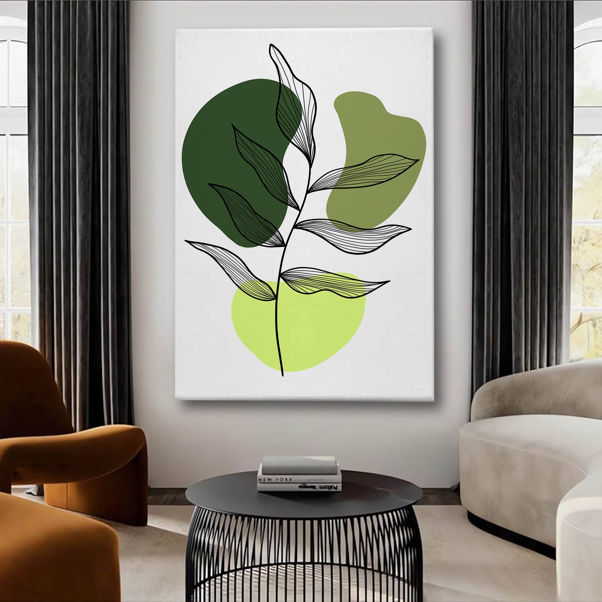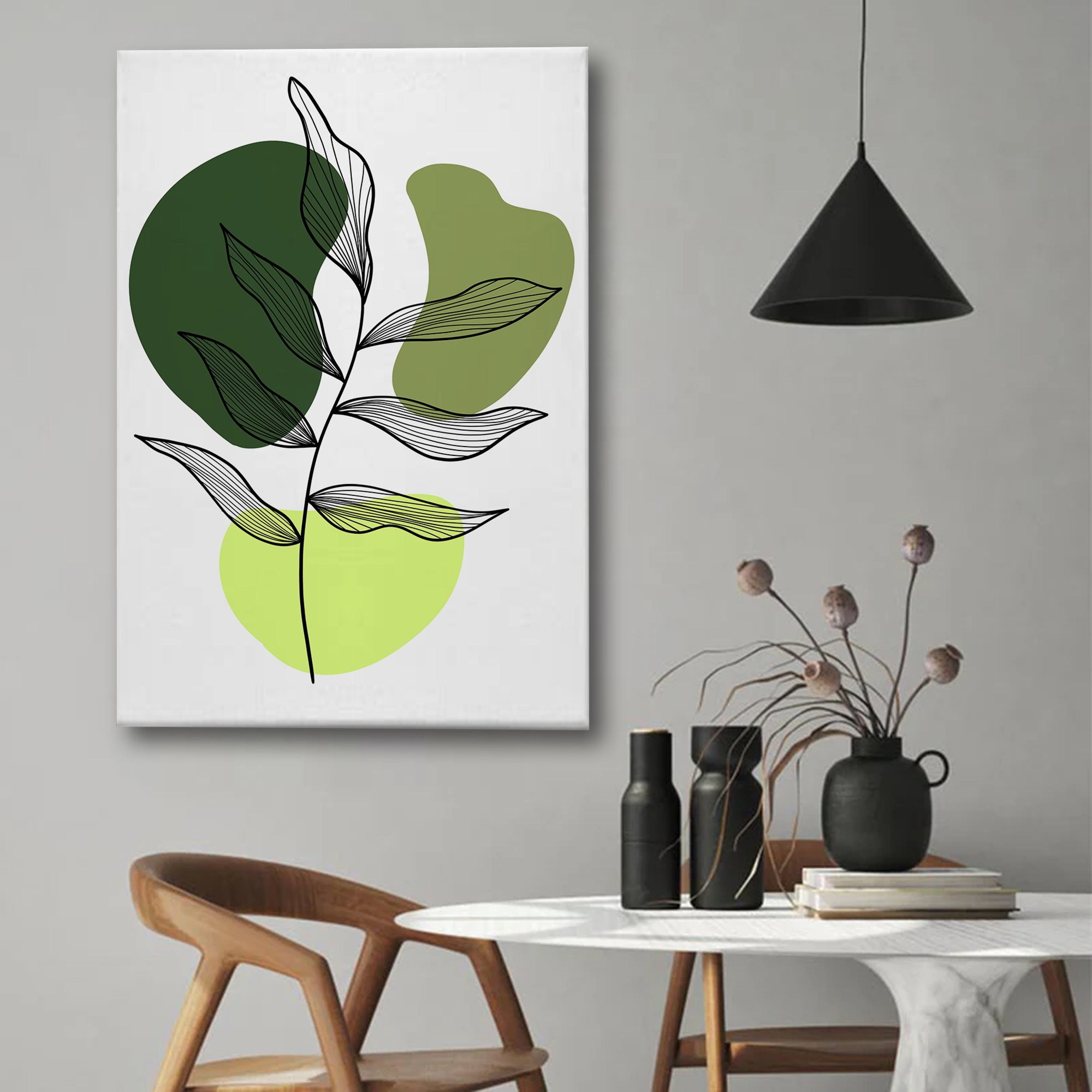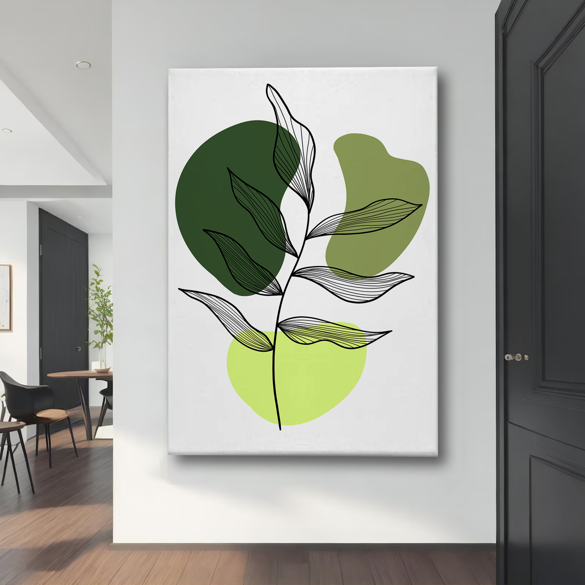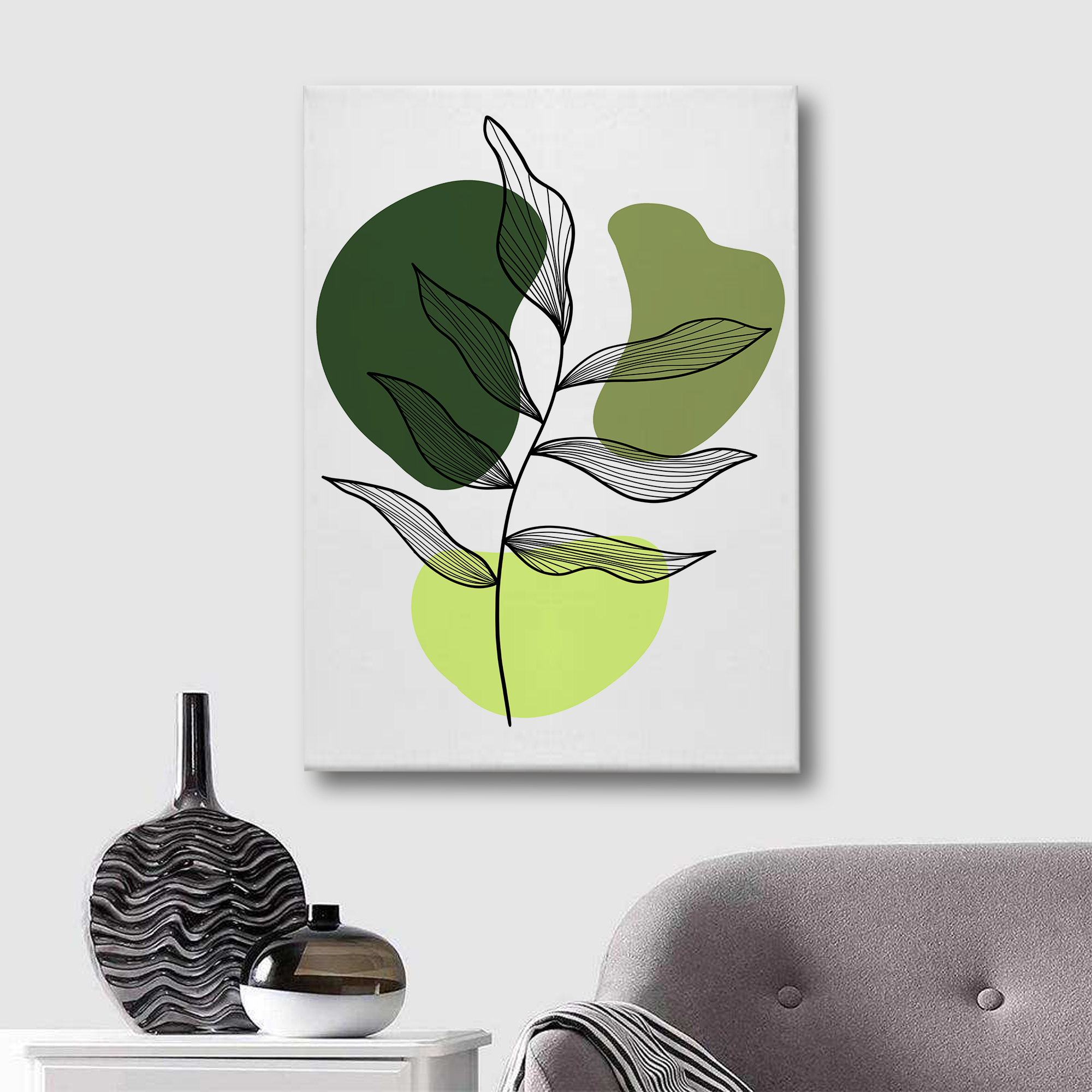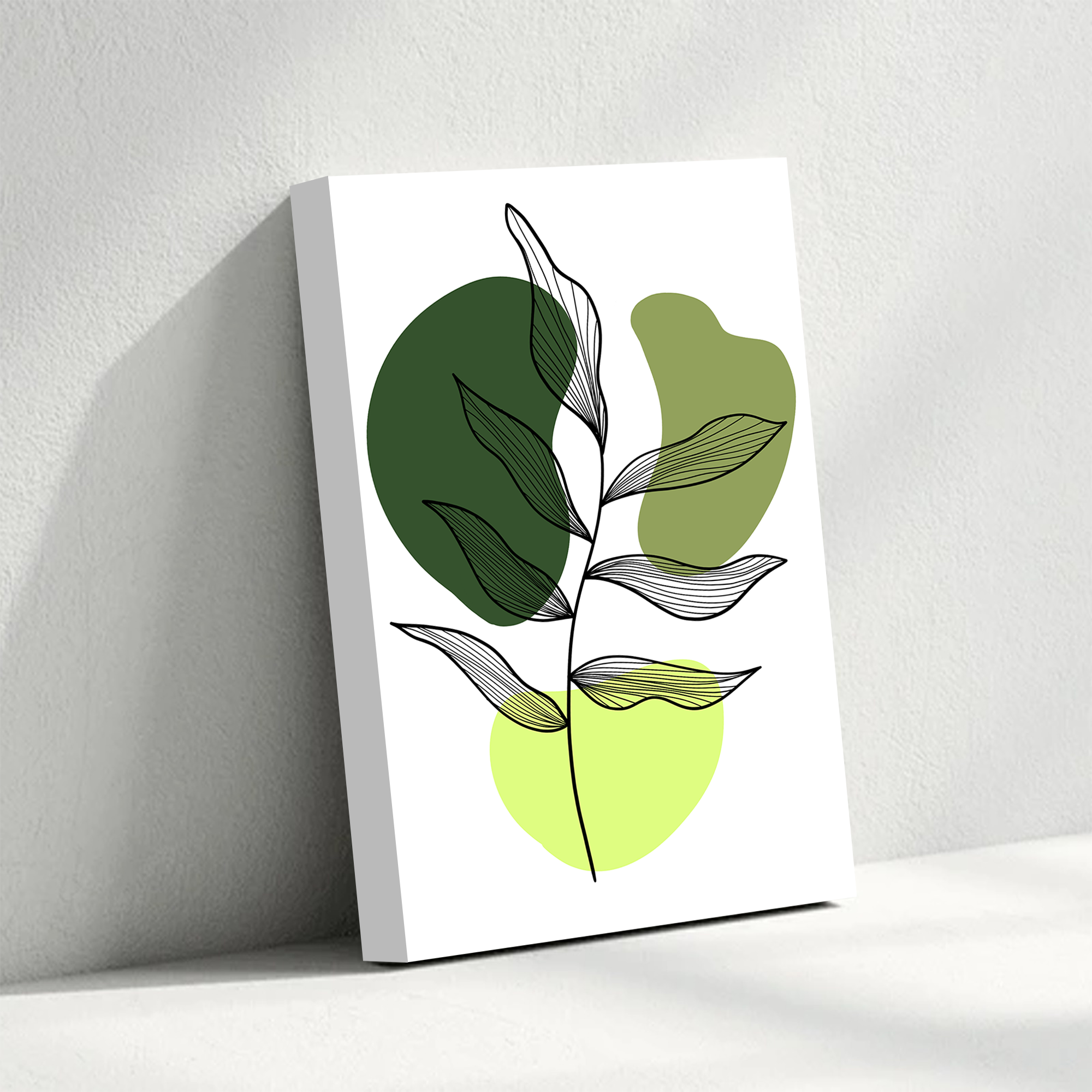 Minimalist Green Leaf Abstract Canvas Wall Art – Modern Botanical Print
