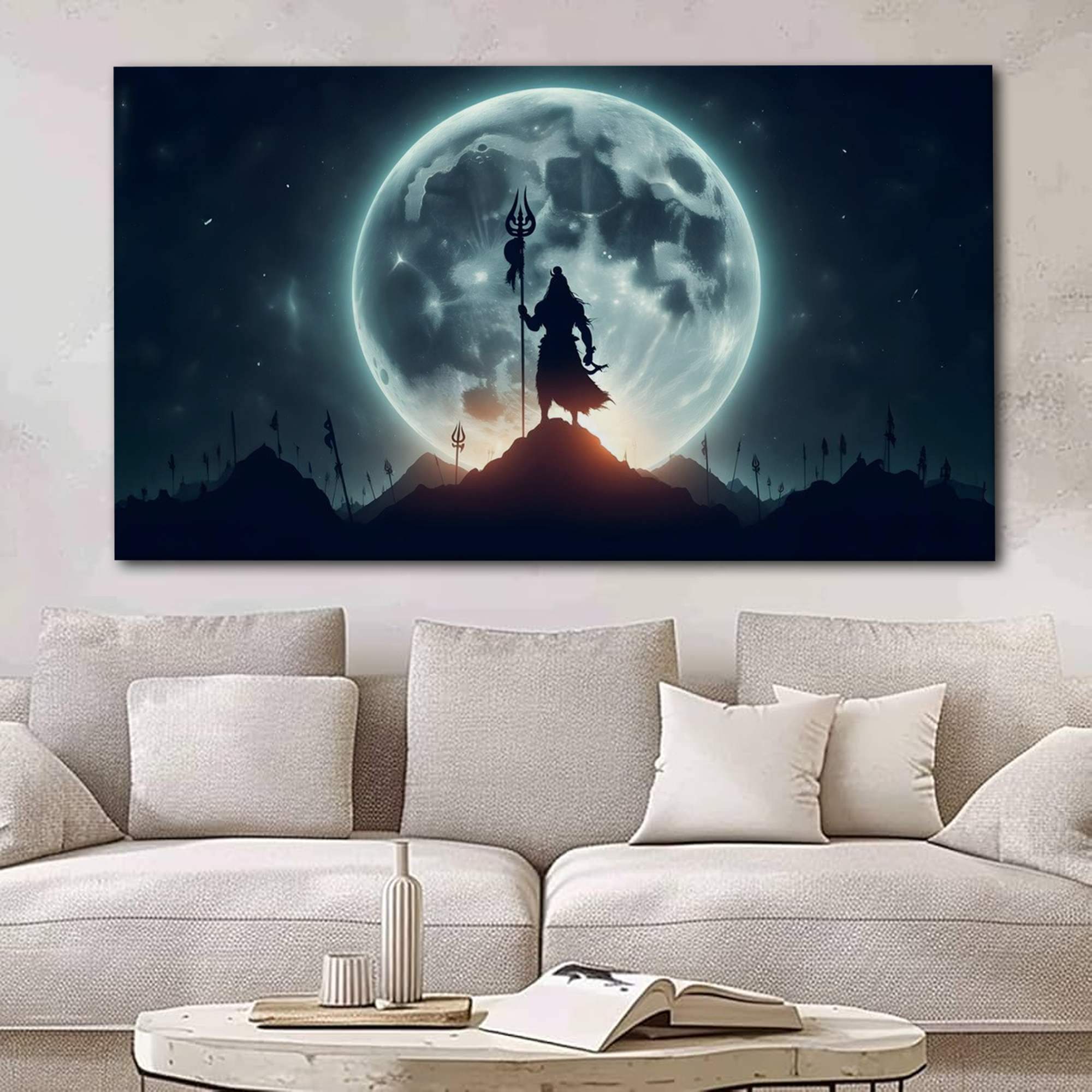 Moonlit Power – Lord Shiva Silhouette Canvas Wall Art