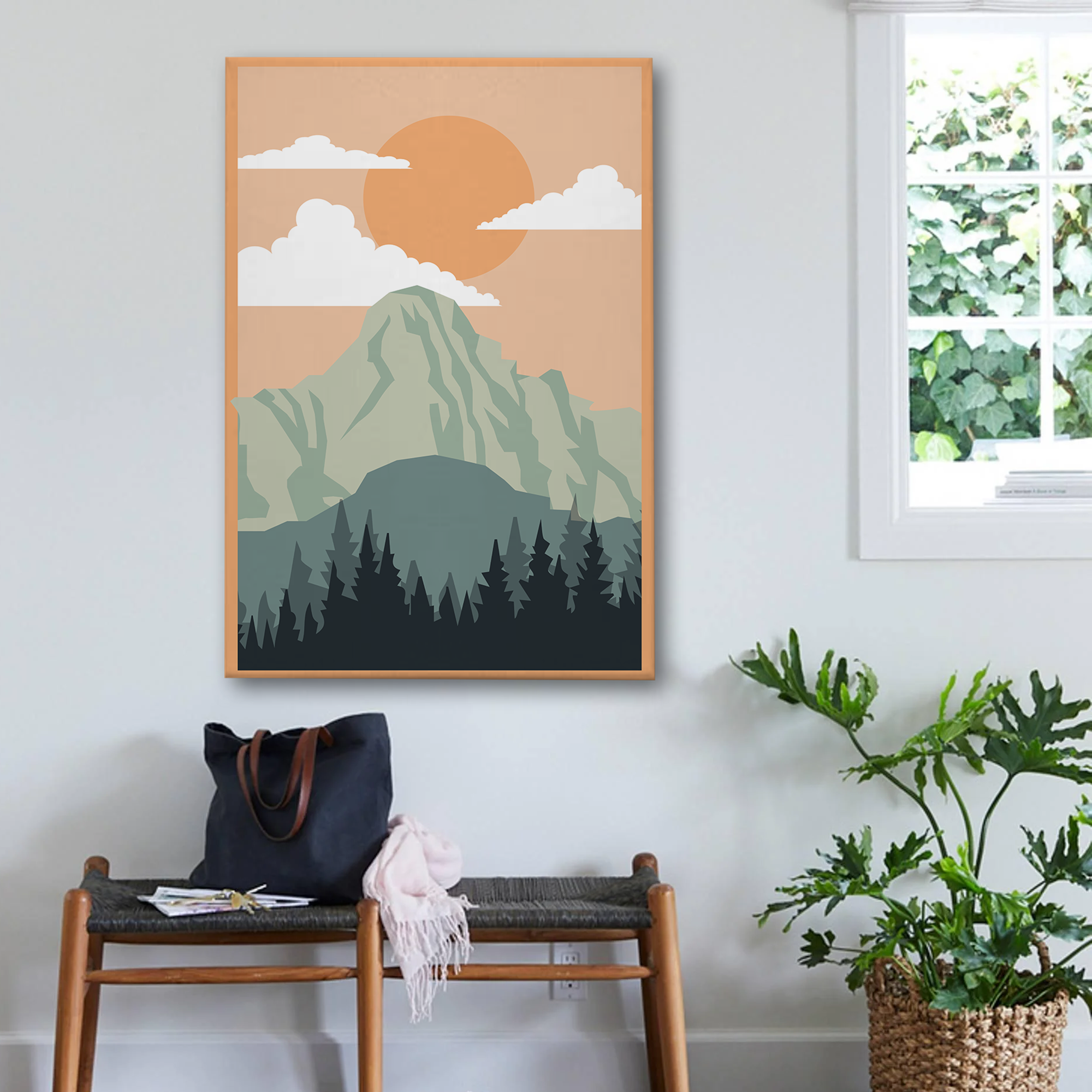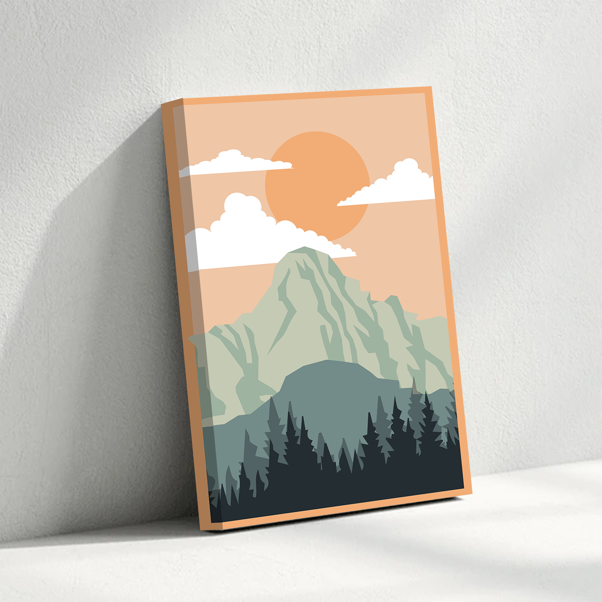 Mountain Sunset Forest Canvas Wall Art – Minimalist Nature Decor