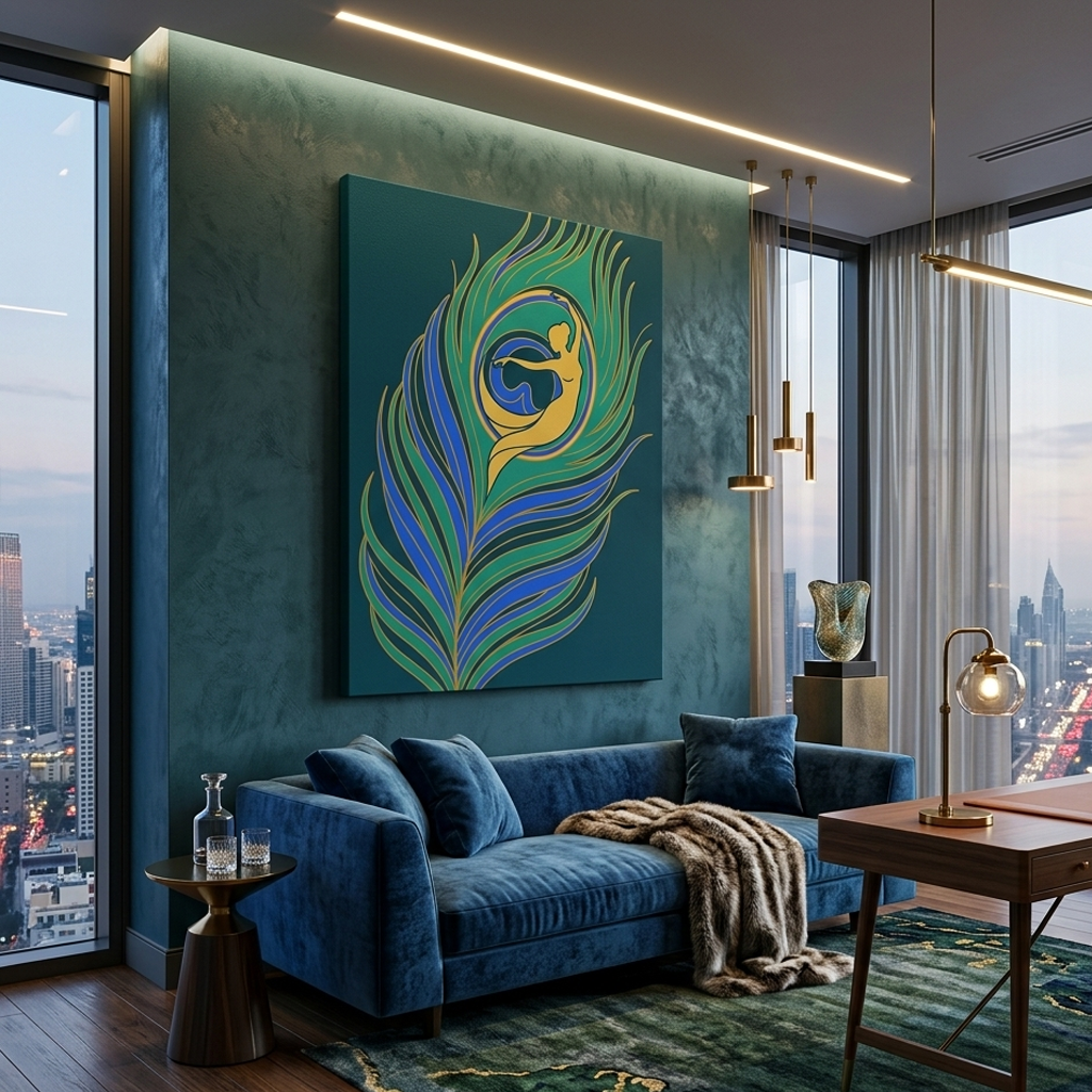 Peacock Feather Dancer — Indian Dual Meaning Canvas Wall Art Prints