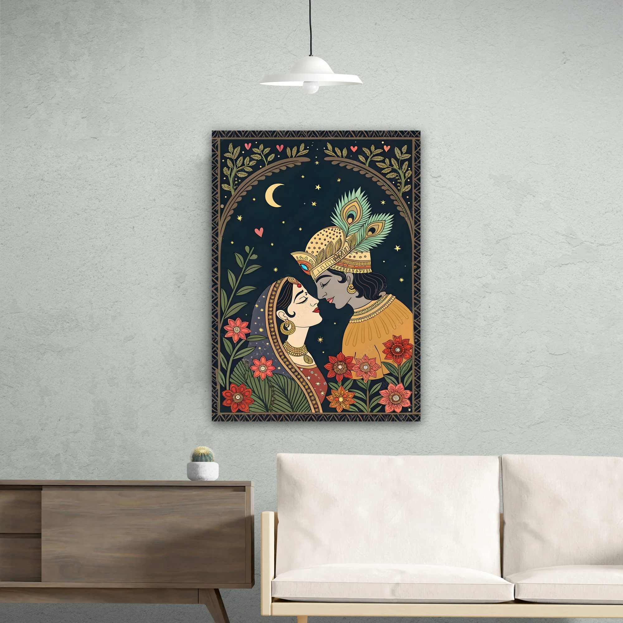 Radha Krishna Folk Art Canvas Wall Art Prints – Traditional Home Décor