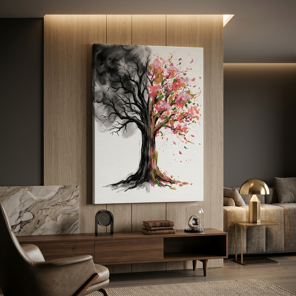 Two Seasons Tree — Winter Spring Split Watercolour Canvas Wall Art Prints